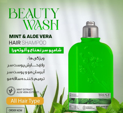 شامپو سر نعناع و آلوئهورا رفع خارش پوست سر، آبرسانی و ترمیم تارهای مو