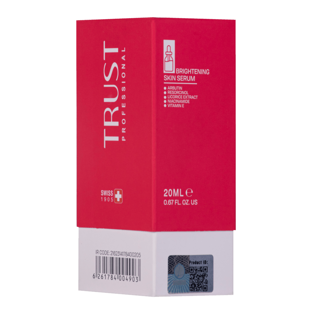 سرم روشن کننده تراست، ضمن آبرسانی پوست، با داشتن مواد مؤثره مناسب و کاربردی پوست را روشن کرده و لک و تیرگیهای آن را برطرف میکند. این محصول با وجود آربوتین در ساختار خود، آنزیم تیروزیناز (که نقش اساسی در تولید ملانین دارد) را مهار کرده و از ایجاد لک روی پوست جلوگیری میکند. رزورسینول موجود در این سرم، از بروز لک جلوگیری کرده و لکهای پوستی را کوچک و کمرنگ میکند. نیاسینامید در این محصول علاوه بر وظیفه روشنکنندگی پوست، با داشتن خواص آنتیاکسیدانی از پوست دربرابر رادیکالهای آزاد محافظت میکند و عصاره شیرینبیان هم از لک، قرمزی و التهاب در پوست جلوگیری میکند. سرم روشنکننده تراست، یک محصول فوقالعاده برای داشتن پوستی روشن، یکدست و زیباست.