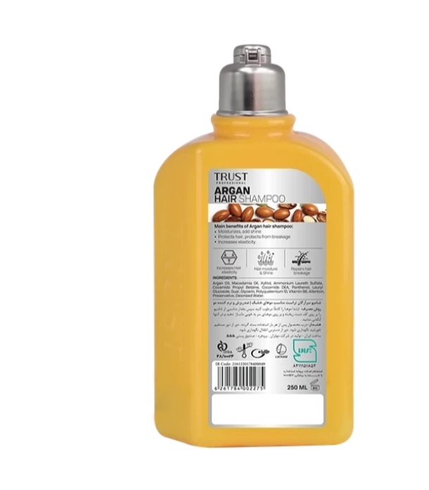 شامپو سر آرگان تراست، با داشتن روغن آرگان و روغن ماکادمیا در ترکیبات خود، تارهای خشک و شکننده موهای شما را نرم کرده و با ایجاد یک لایه چربی در سطح پوست شما، به حفظ رطوبت کمک میکند. زایلیتول موجود در این شامپو نیز به آبرسانی سریع و طولانیمدت پوست سر شما کمک کرده و موجب شادابی موهای شما میشود.