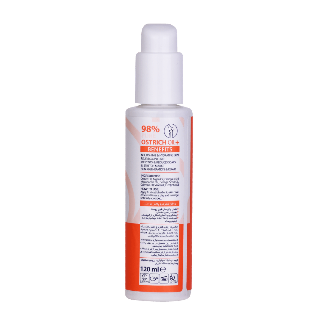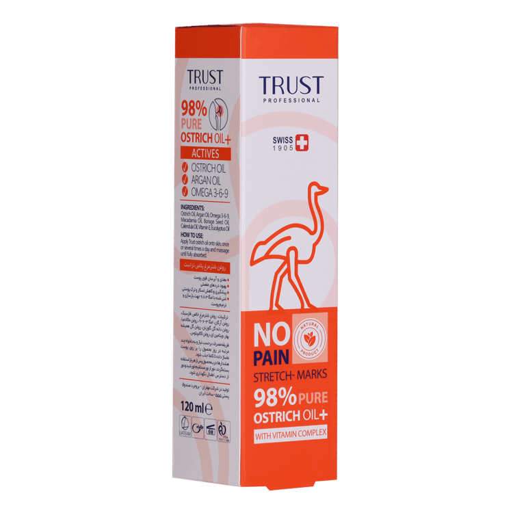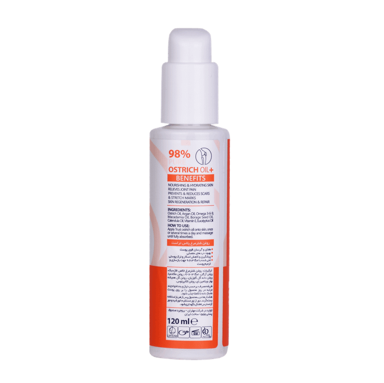 روغن شترمرغ غنی شده تراست برای اولین بار با بهره گیری از فاز سبک روغن شترمرغ بصورت کاملا خالص (خلوص 98 درصدی) در کنار یک کمپلکس ویتامین در کنار روغن کالاندولا و روغن جوجوبا همراه با کره گیاهی (شی باتر) سبب حفاظت از پوست در برابر شرایط سخت محیطی میگردد. روغن شترمرغ غنی از امگا 3 و امگا 6 بوده که در کنار روغن جوجوبا با توانایی نفوذ به لایههای زیرین پوست، علاوه بر بازسازی و بهبود عملکرد پوست موجب آبرسانی طولانیمدت پوست میگردد.