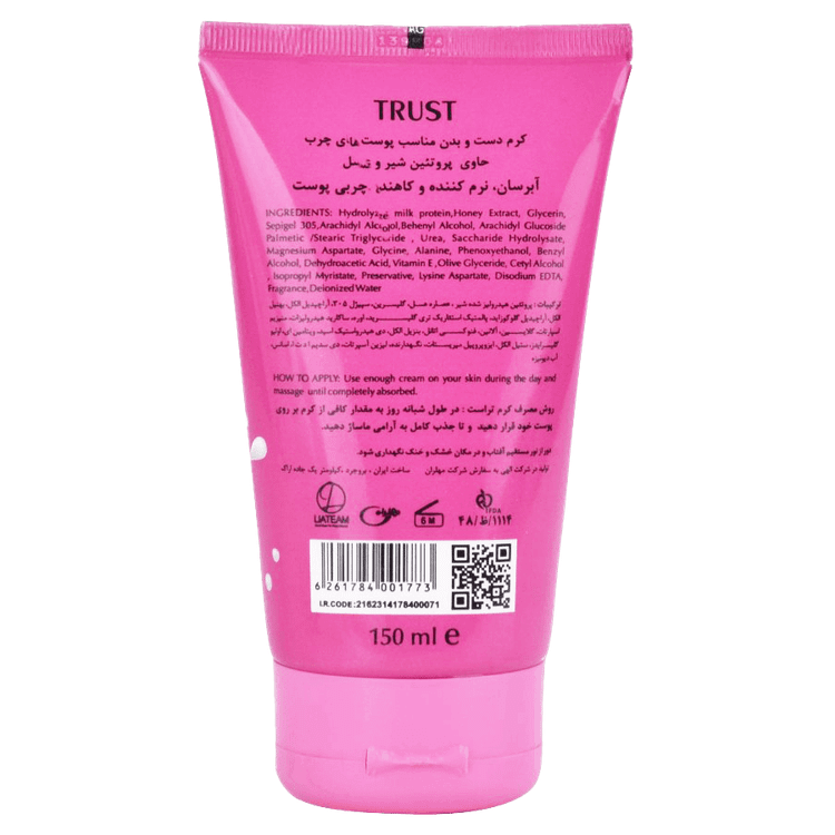 کرم شیر و عسل تراست به دلیل ترکیب مواد معدنی که در شیر و عسل موجود است خاصیت تغذیه کنندگی داشته و پوست را به خوبی آبرسانی میکند. این کرم همچنین نرم کنندهای طبیعی بوده و پوست را هیدراته میکند. شیر و عسل هر دو دارای خواص ضدباکتریایی زیادی هستند که به زدودن آلودگیها از روی پوست کمک زیادی میکنند.