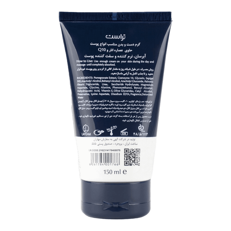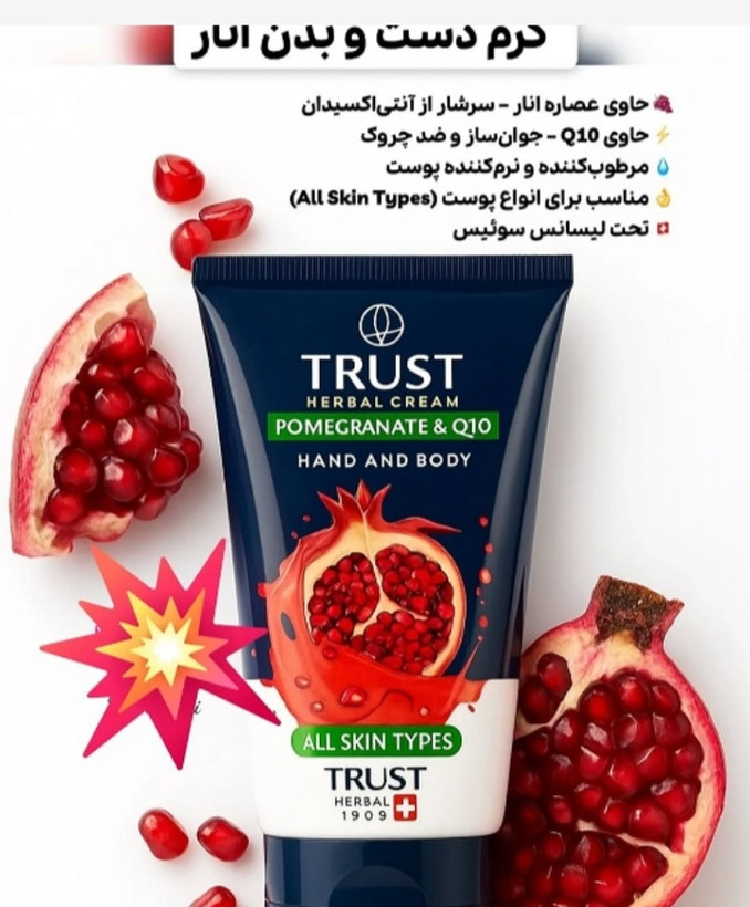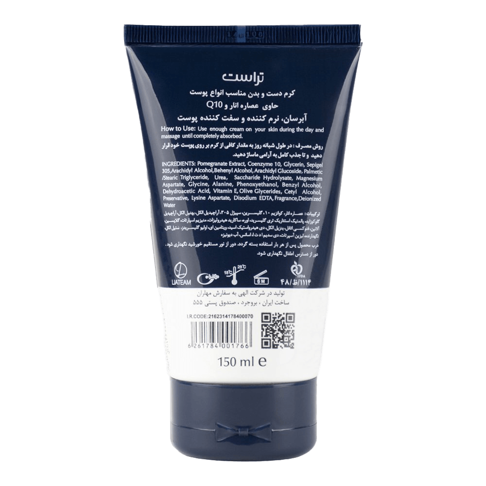 Q10 به کار رفته در کرم انار و Q10 تراست، با تحریک سنتز کلاژن، اثر جوانسازی (سفت کنندگی) بر پوست شما دارد. همچنین این کرم با بهرهگیری از اثر آنتی اکسیدانی منحصر به فرد عصاره انار موجب مهار رادیکالهای آزاد محیطی و ایجاد یک سد دفاعی بر روی پوست میشود. به دلیل خواص بینظیر Q10، طراحی این محصول به گونهای صورت گرفته است که همه افراد با هر نوع پوستی بتوانند از این محصول استفاده کنند. این محصول به عنوان سدی در برابر تبخیر آب پوستی عمل میکند که موجب جلوگیری از خشکی پوست میشود. کرم انار و Q10 تراست، همچنین برای کاهش اثرات اگزمای پوست بدن نیز پیشنهاد میشود.