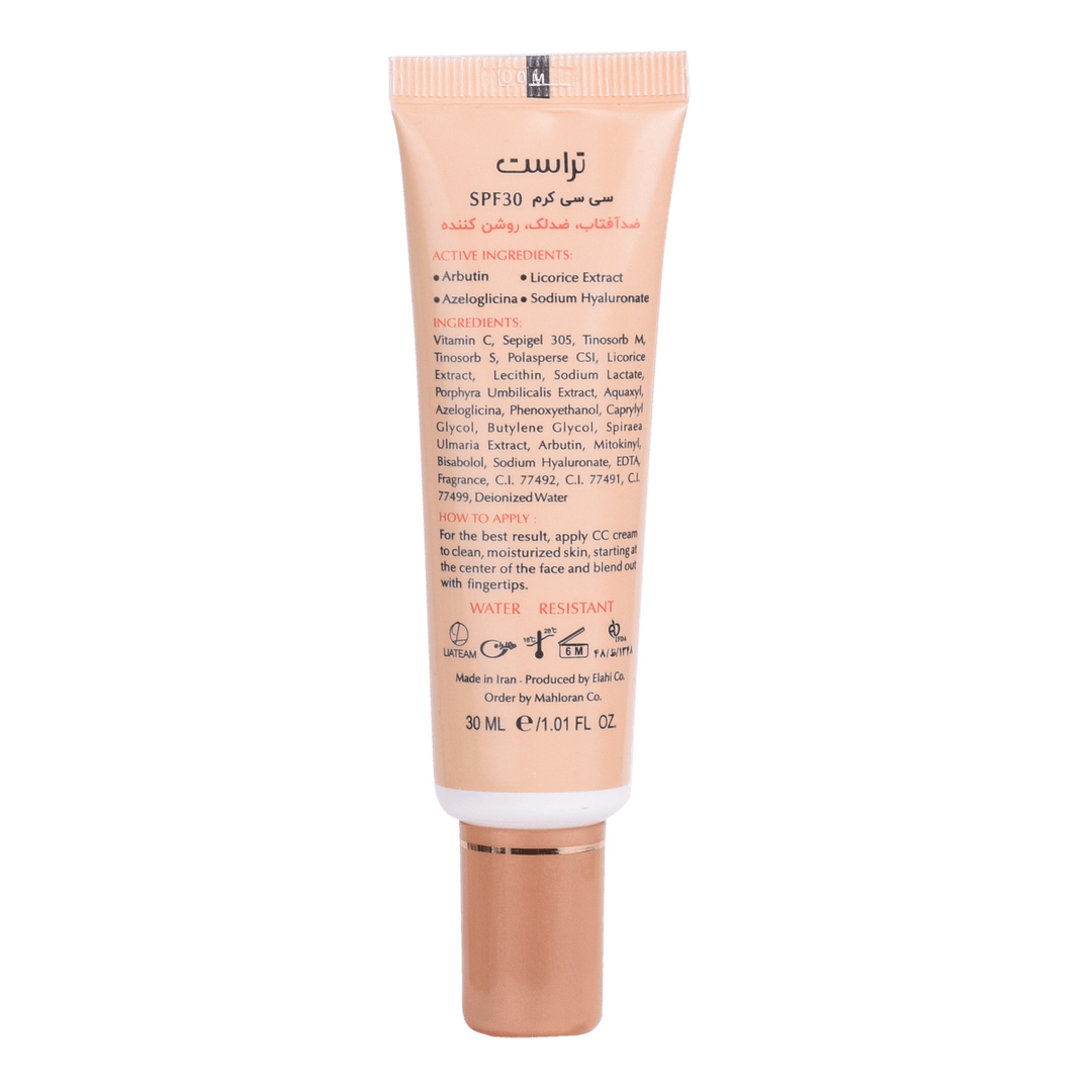 CC Cream (Color Corrector Cream) کرمی است که به اصلاح رنگ پوست، رفع لکها و جای جوش کمک میکند و پوست را روشن و یکدست میکند. دارای SPF برای محافظت در برابر نور خورشید است و با ترکیبات آربوتین، میتوکینیل، ویتامین C، نیاسینامید و آزلوگلیسین از تولید ملانین جلوگیری کرده و روشنایی پوست را افزایش میدهد. عصاره جلبک و ترکیبات ضدالتهاب مثل اسپیرا اولماریا و بیزابولول، از ایجاد لک و التهاب جلوگیری میکنند.