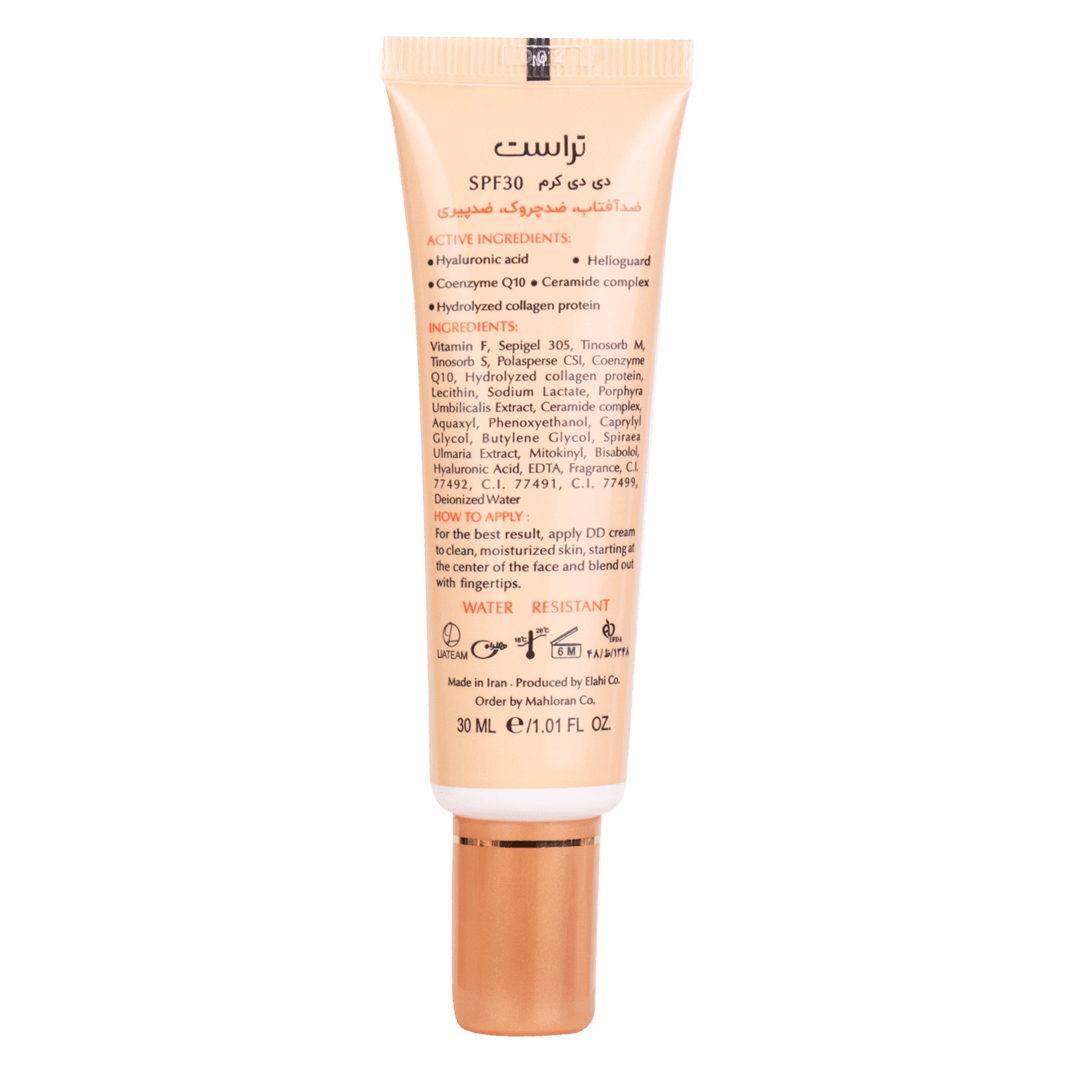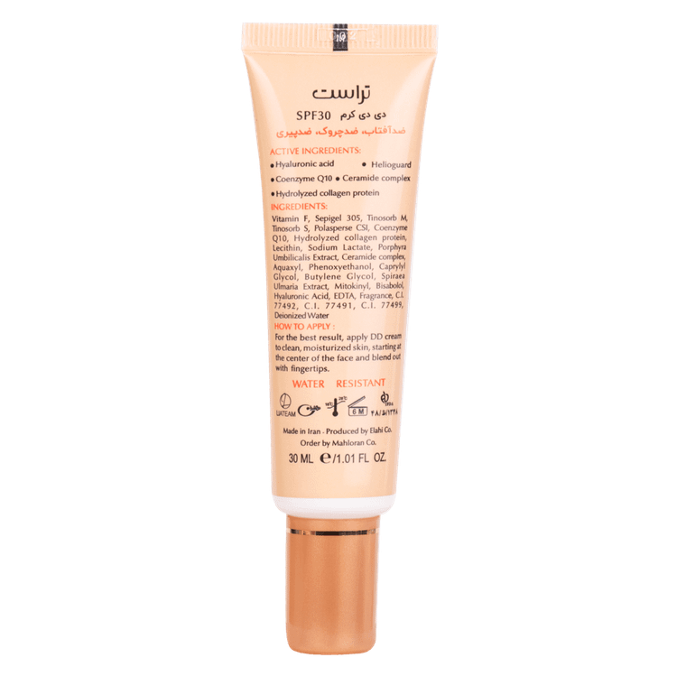 DD Cream (Daily Defense Cream) محصولی چندکاره با پوشش طبیعی، ضدچروک و ضدپیری است. ترکیبات هیالورونیک اسید، کوآنزیم Q10، پروتئین کلاژن و سرامید کمپلکس پوست را آبرسانی، تقویت و جوانسازی میکنند.