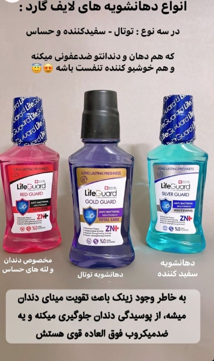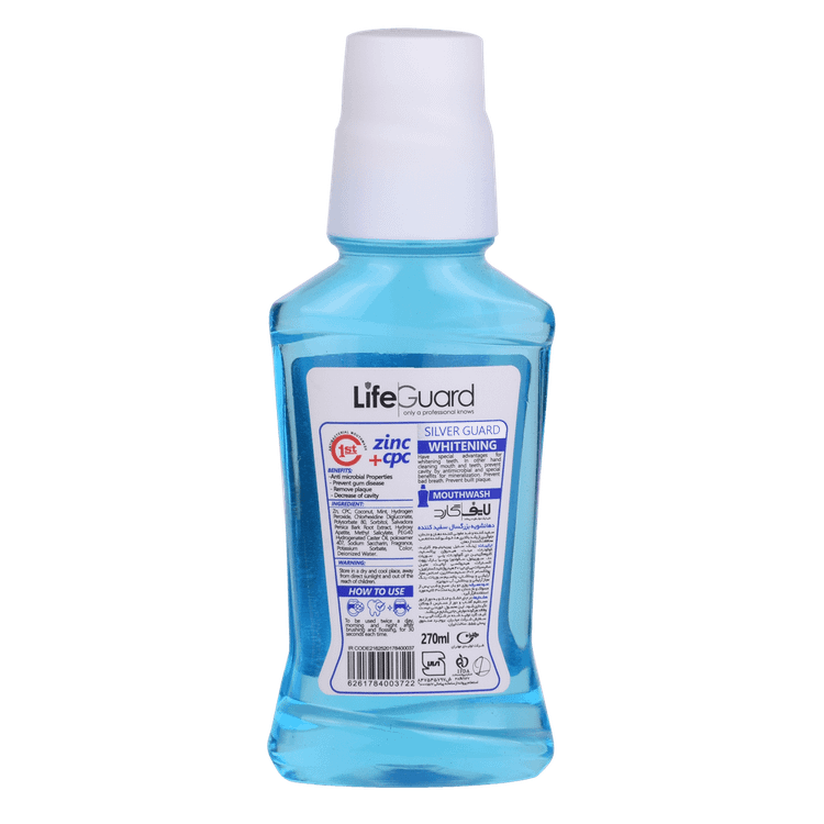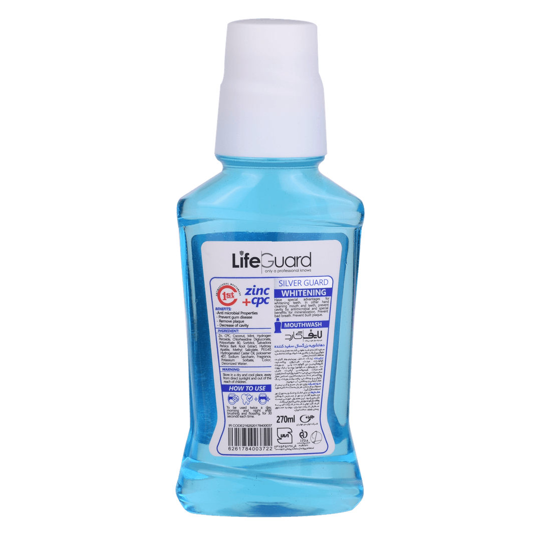 دهانشویه Silver Guard لایف گارد، راهکاری موثر برای حفظ سفیدی دندانها و سلامت دهان است. این محصول با خاصیت ضدعفونیکنندگی قوی، محیط دهان را کاملاً پاکسازی میکند.