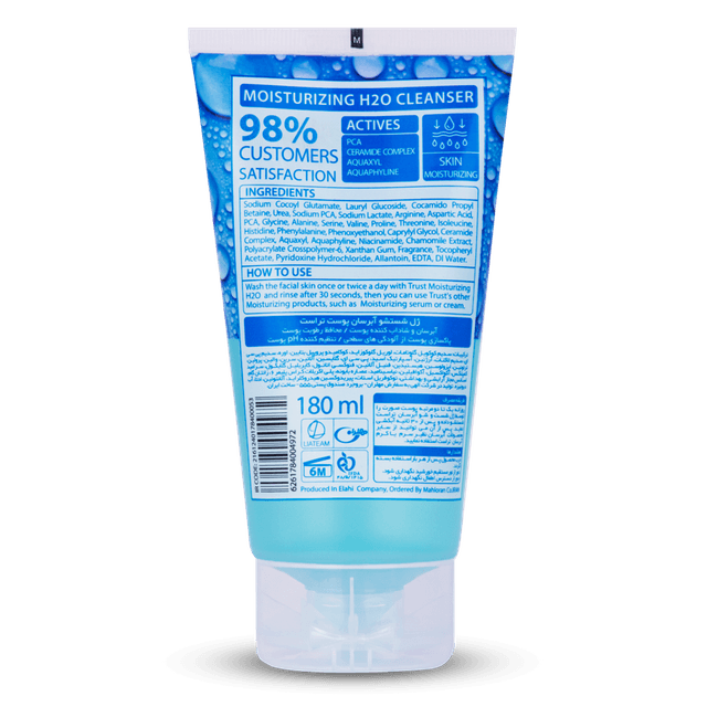 نحوه مصرف: روزانه یک تا دو مرتبه پوست صورت را توسط ژل شستشوآبرسان تراست شستشو داده و پس از 30 ثانیه آبکشی نماید سپس می توانید از سایر محصولات آبرسان نظیر سرم یا کرم آبرسان تراست استفاده نمایید