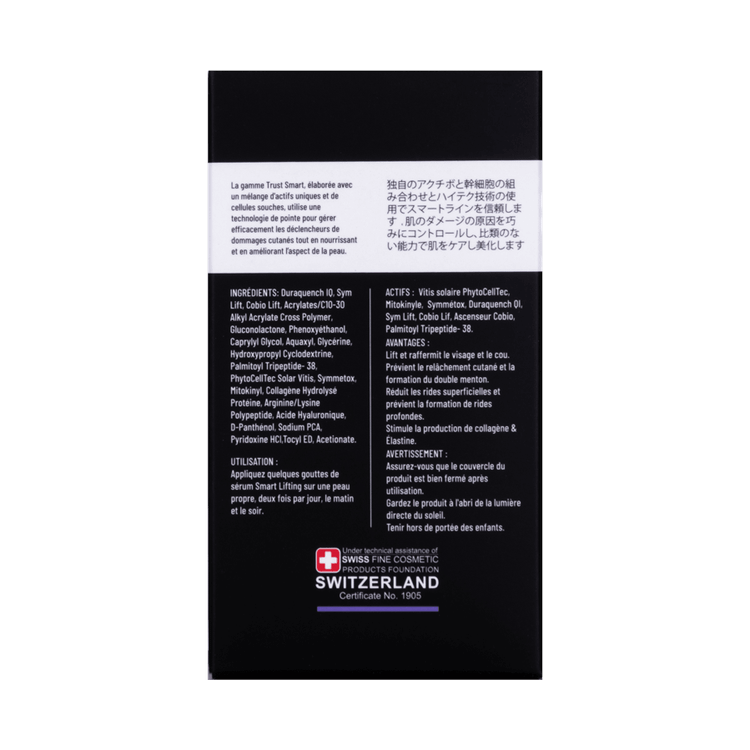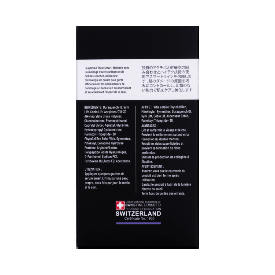 این سرم با غلظت بالای مواد موثره، بلافاصله پس از مصرف اثر لیفتینگ خود را نشان میدهد. سرم تراست اسمارت با نفوذ به لایههای عمیق پوست، افتادگیهای صورت را بهبود بخشیده و خطوط ریز را محو میکند. تجربهای متفاوت از پوستی سفت و جوان با محصولات تخصصی تراست.