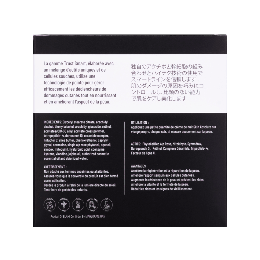 کرم شب تراست اسمارت با فرمولاسیون پیشرفته، در طول شب که پوست در بالاترین سطح بازسازی قرار دارد، به ترمیم بافتهای آسیبدیده میپردازد. این محصول با آبرسانی عمیق و تقویت سد دفاعی پوست، از ایجاد چروکهای جدید جلوگیری کرده و شادابی را به چهره شما بازمیگرداند.