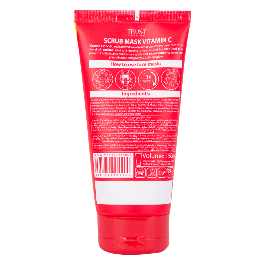 نحوه مصرف: شبها به مقدار مناسب از ماسک، روی پوست تمیز قرار داده، به آرامی و بصورت دورانی ماساژ دهید. سپس با آب کافی شستشو نمایید. پیشنهاد میشود بعد از اسکراب پوست، از کرم آبرسان تراست استفاده نمایید