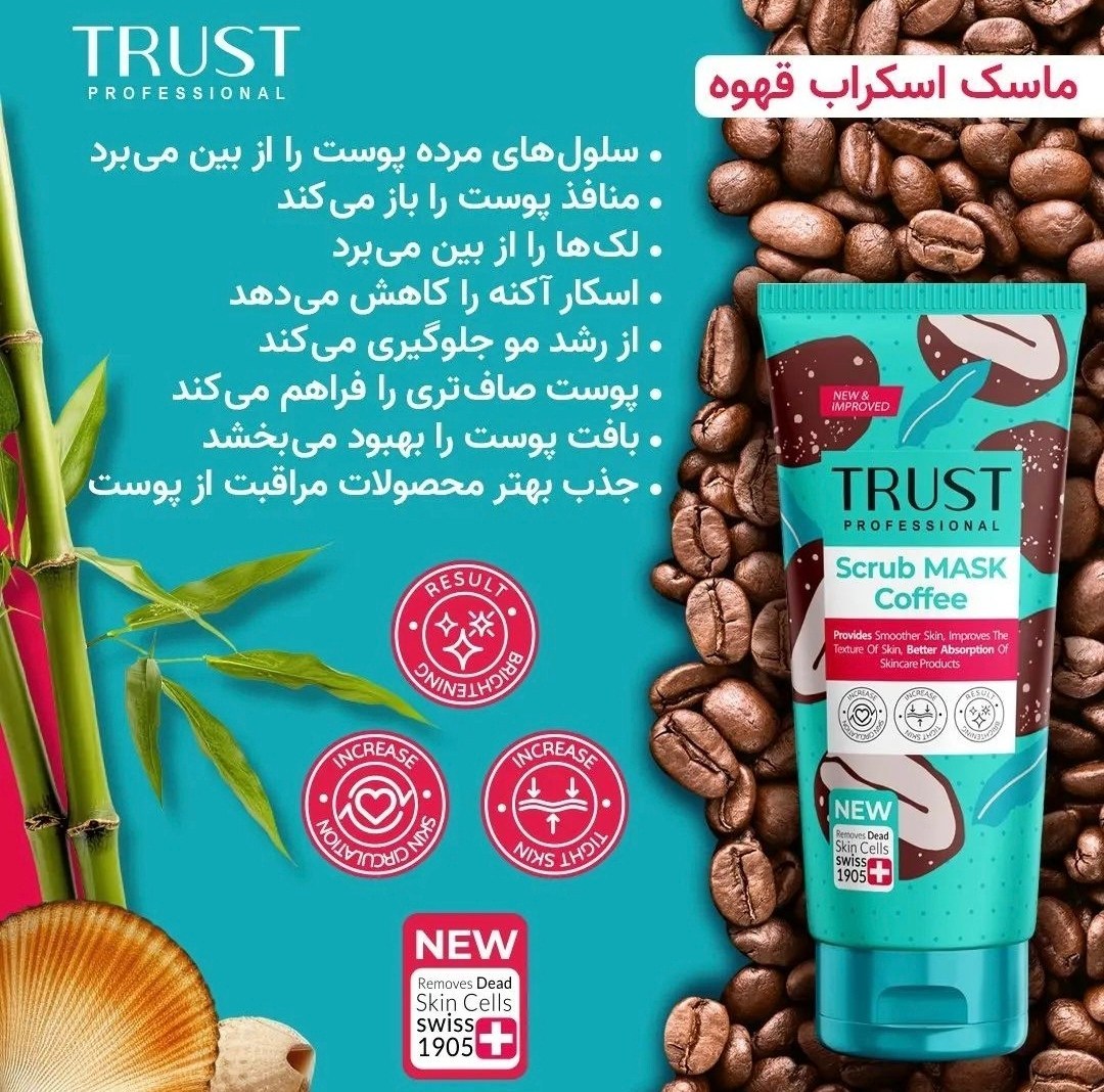 نحوه مصرف: شبها به مقدار مناسب از ماسک، روی پوست تمیز قرار داده، به آرامی و بصورت دورانی ماساژ دهید. سپس با آب کافی شستشو نمایید. پیشنهاد میشود بعد از اسکراب پوست، از کرم آبرسان تراست استفاده نمایید