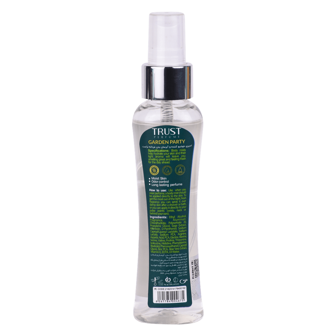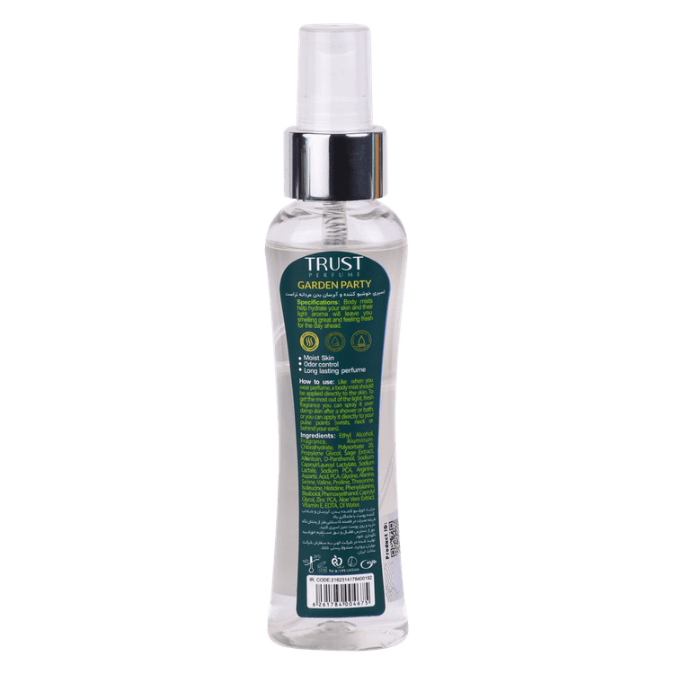 حس حضور در یک باغ سرسبز و باطراوت! بادی میست گاردن پارتی تراست با رایحهای گیاهی و خنک، خستگی یک روز طولانی را از تن شما بهدر میکند.